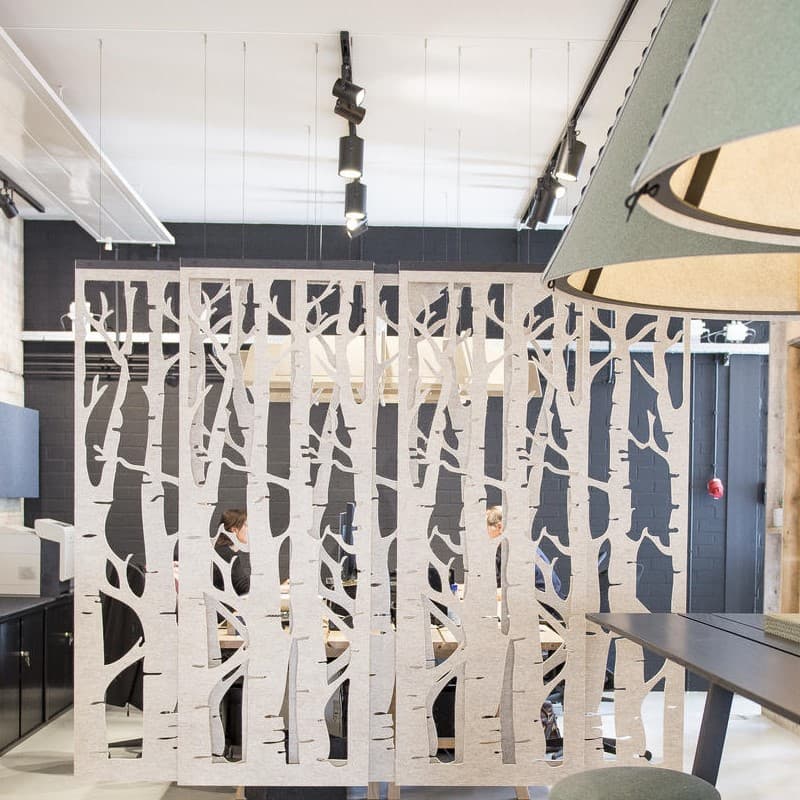 Akoestische divider met unieke patronen en uiteenlopende kleuren en prints